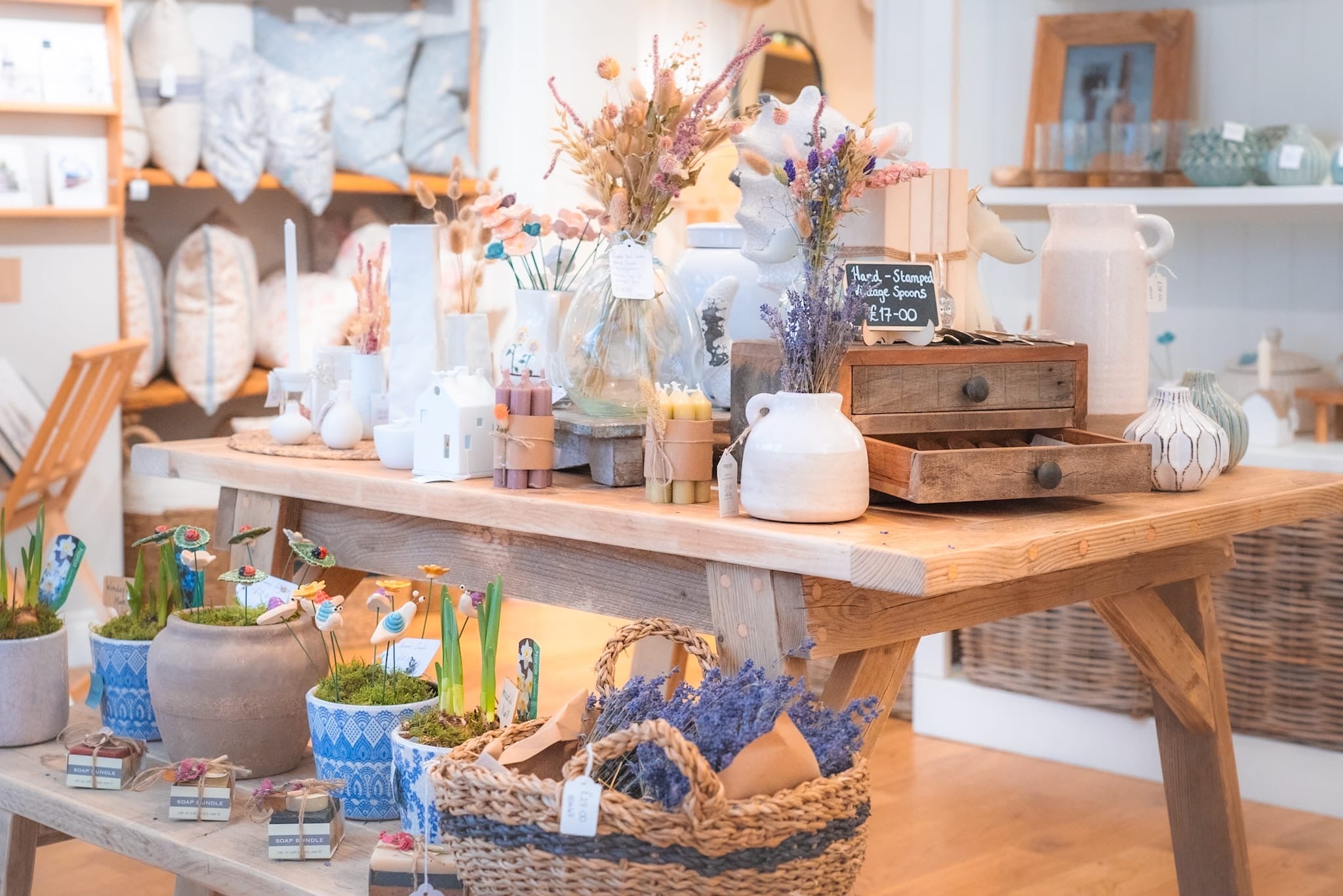 Find us, close to Whitby’s swing bridge at number 1 Grape Lane. Look out for our beautiful pale green shop front painted in a tone inspired by the Cornish coast. Step inside and be greeted with the delicate and clean scent of British grown lavender and natural botanicals and enjoy the effect of our calming colour palette. Drawing on several influences; you’ll find a mix of French, Scandi and Coastal inspired homewares. Our love of neutral, soft colours and florals are reflected in all our products, making it the perfect place to shop for a coastal cottage or to find unique and precious gifts.